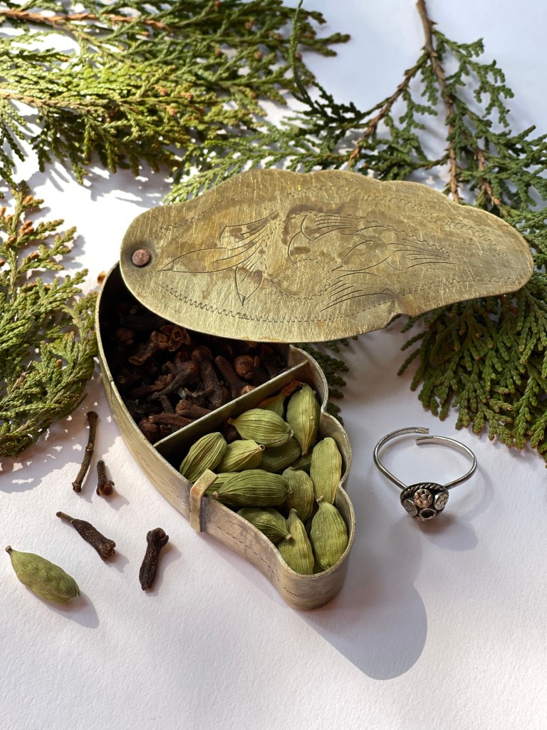 Before alighting off the classic, white Ambassador car, with towels as seat covers and musty leather, she would open a small “dibbi” from her black “SreeLeathers” hand bag. Swiftly, like a gentle glide, an elaichi would be popped into her mouth. I saw her do this, everytime she left the car to visit anywhere. I had in that time, decided, I want that dibbi when she passes.